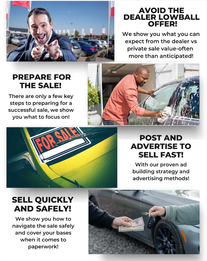 Our step-by-step system makes prep and listing so quick you can do it in just 1–2 evenings. Clean, photo, list — done. Dealers want you to think it’s complicated, but it’s really simple once you have the blueprint.
